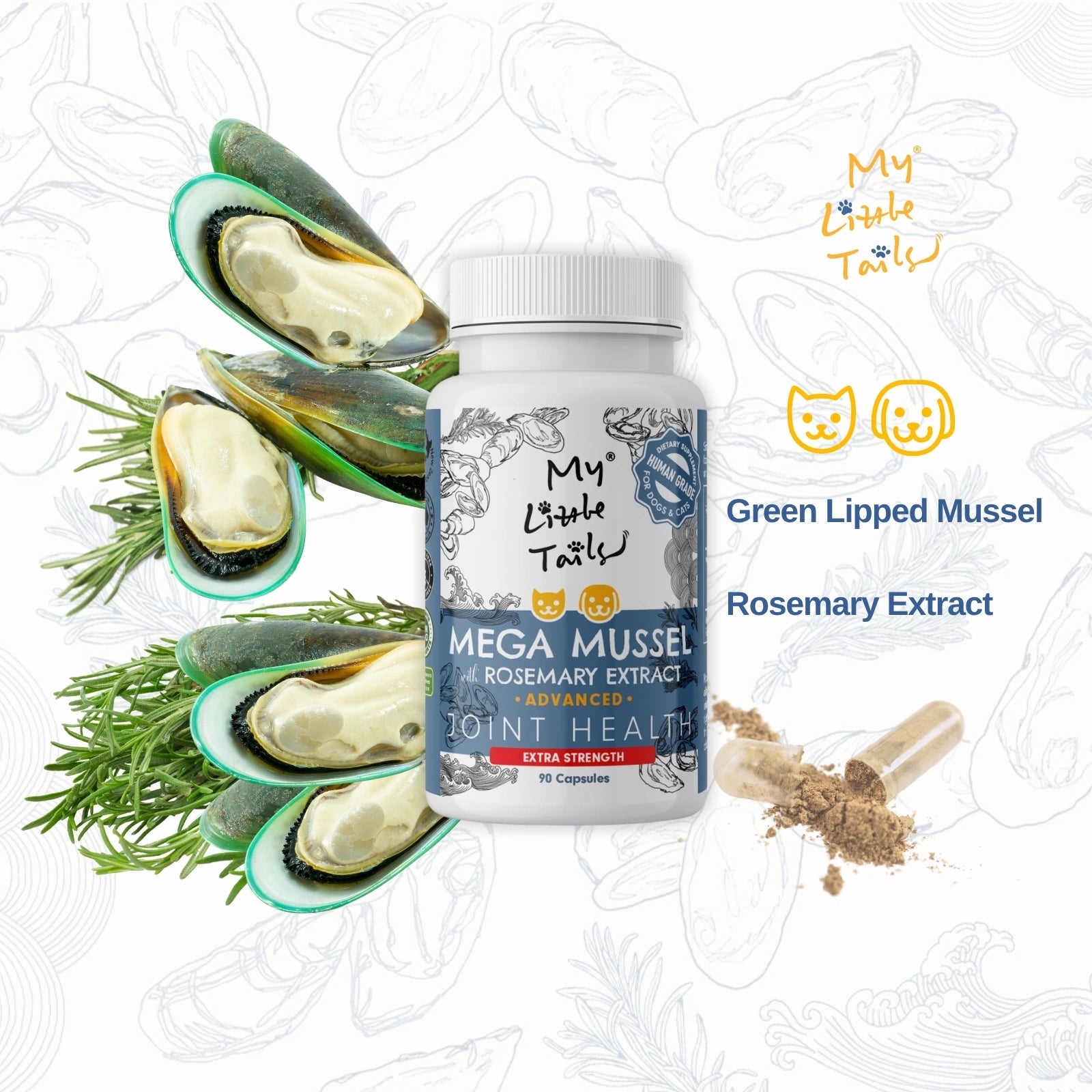 This product is made with high-quality New Zealand Green Lipped Mussel Powder, enhanced with Rosemary Oil. Each pack contains 90 human-grade capsules, making it easy to add to your pet's meals.